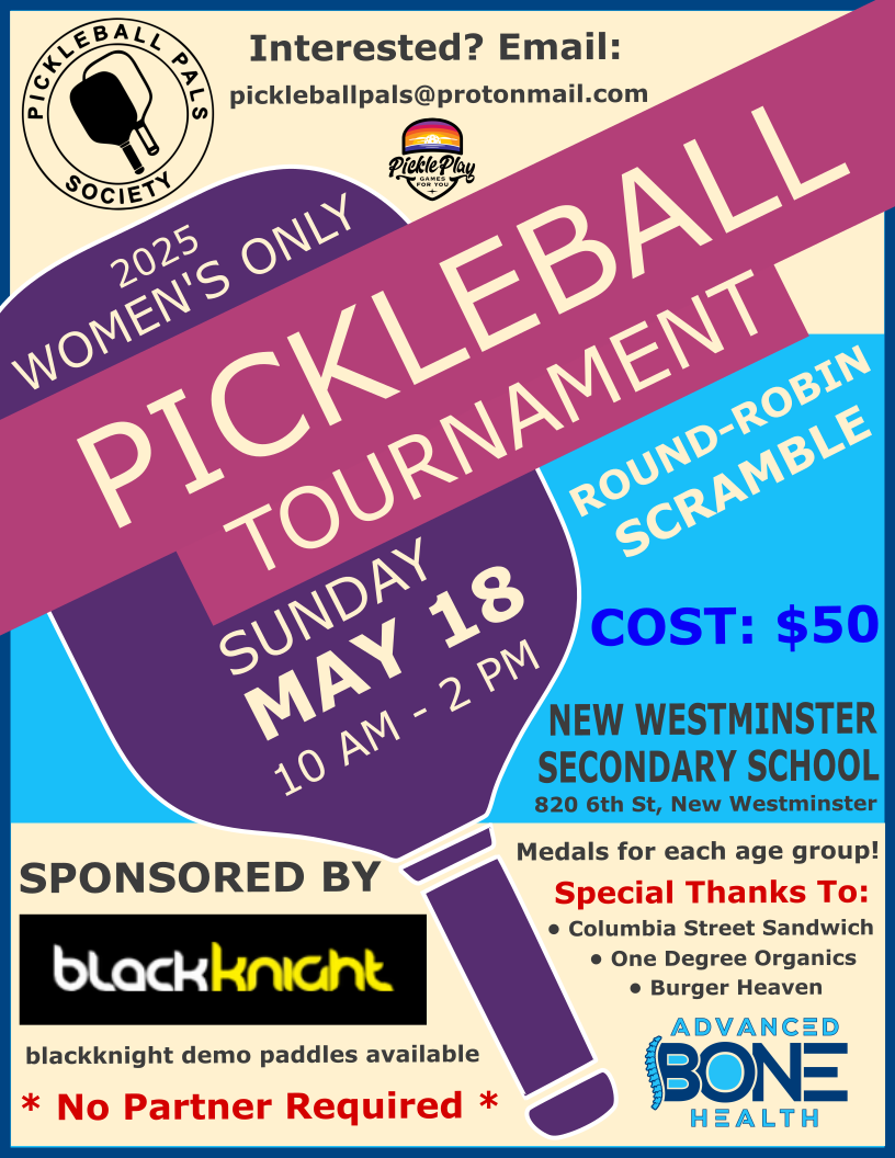 In a round-robin "scramble", you sign-up as an individual and play doubles matches with different random partners each game. Each participant will play 8 games. Games will be played to 11, win by 1. There will be no elimination rounds.